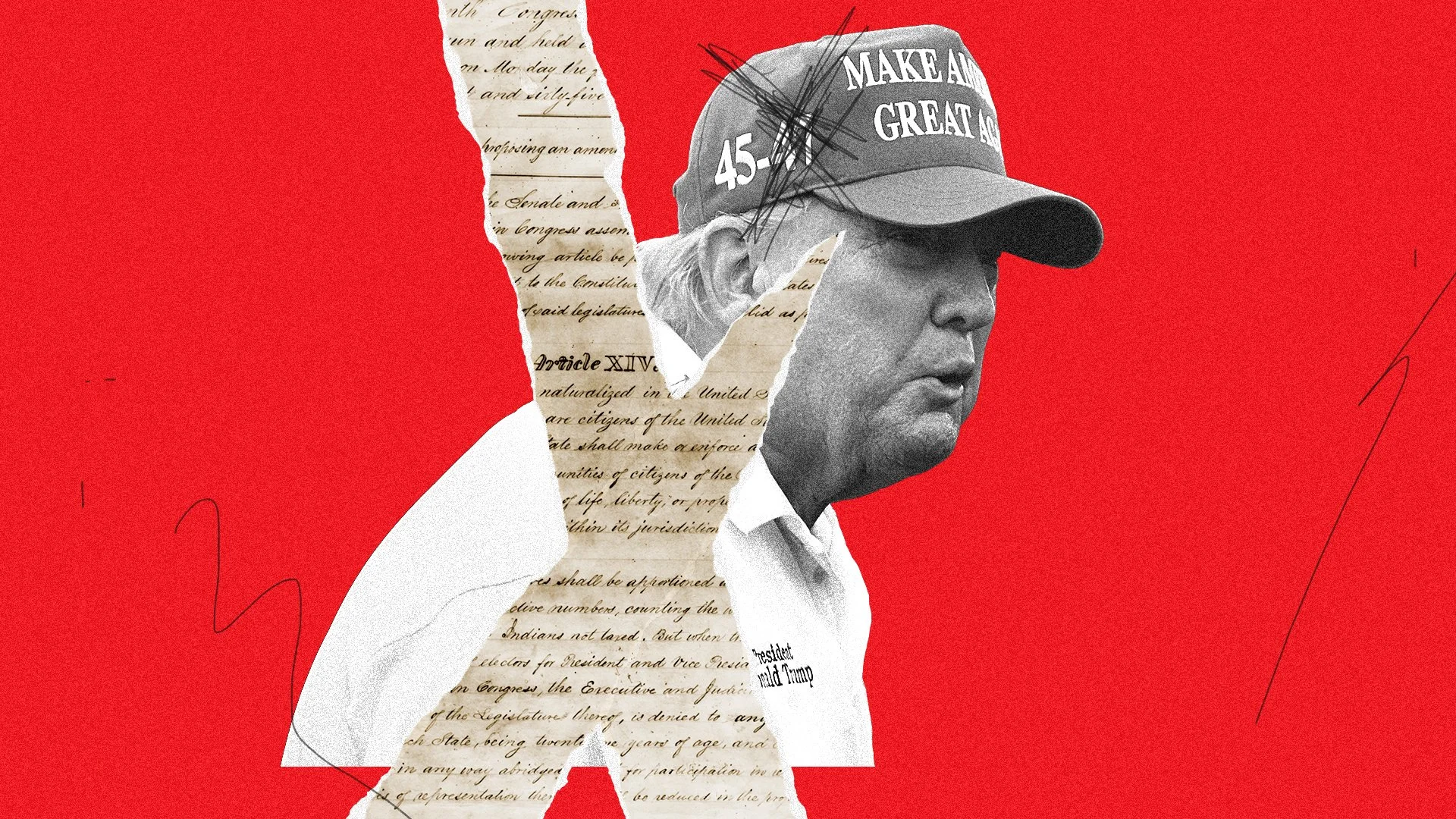Illustration created for Yahoo News: Should Trump be disqualified from running for president?